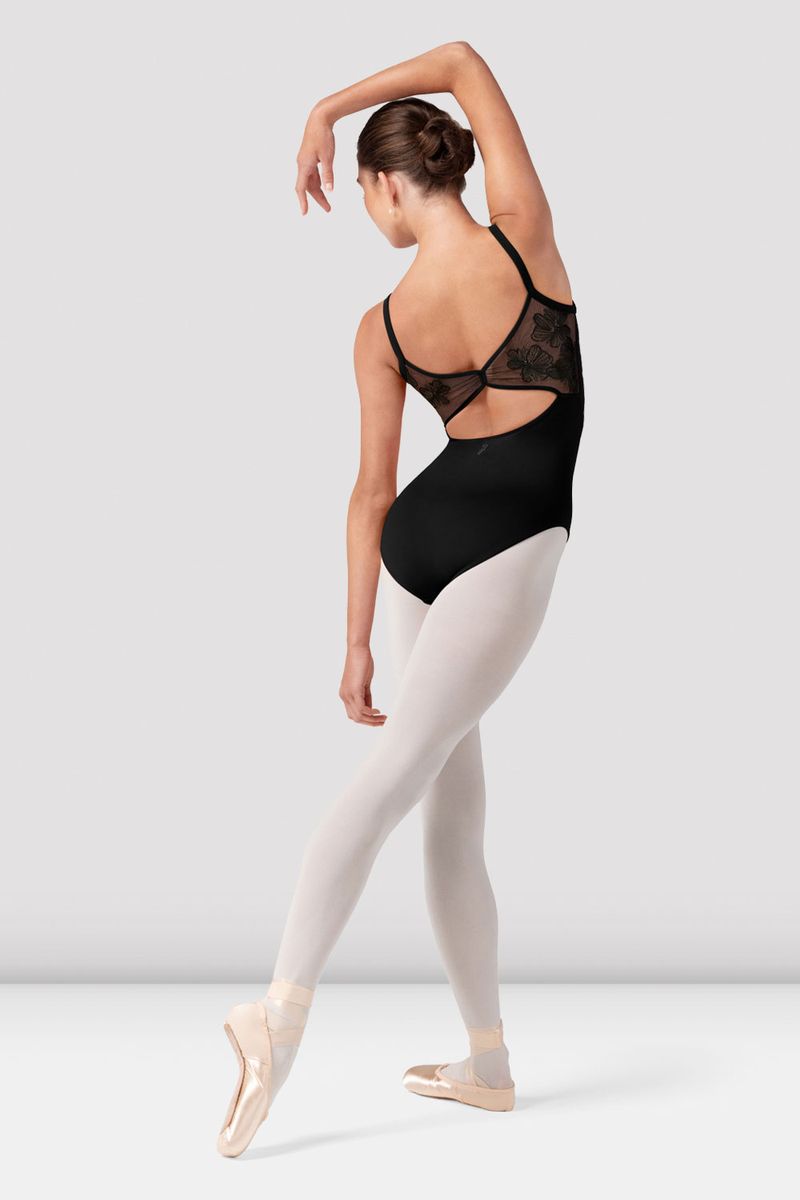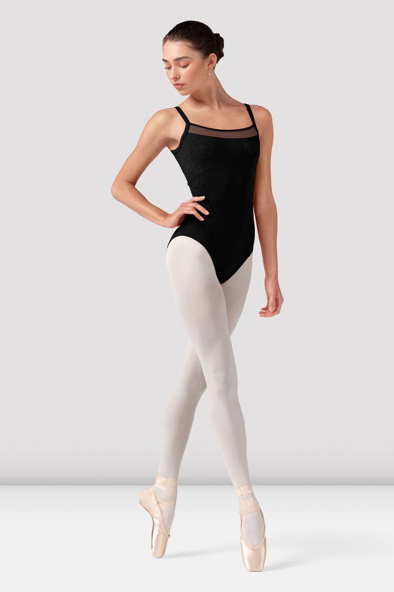 Our Ladies Lorelei Floral Camisole Leotard features a gentle scoop neck with sheer mesh panel, delicate camisole straps with an intricately embroidered mesh back detail. Delicate floral embroidery blooms across each silhouette, with corset inspired seams adding a romantic touch to your dancewear wardrobe. Our Camellia Collection blends timeless beauty with technical precision - inspiring confidence in every movement, from studio to stage.