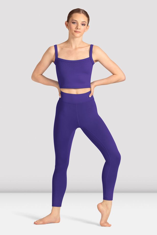 Unser Damen Mirella Celeste Camisole Bedrucktes Crop-Top verfügt über breite, stützende Träger mit einem weichen, strukturierten Punktmuster über der Brust, in einer gekürzten Länge, die perfekt zu hoch taillierten Hosen passt. Unsere Mirella Celeste Kollektion von BLOCH kombiniert elegante Tanzbekleidung mit vielseitigen Einzelteilen. Inspiriert vom Nachthimmel, zeigt jedes Stück ein weiches, strukturiertes Punktmuster vor tiefem, leuchtendem Farbton.