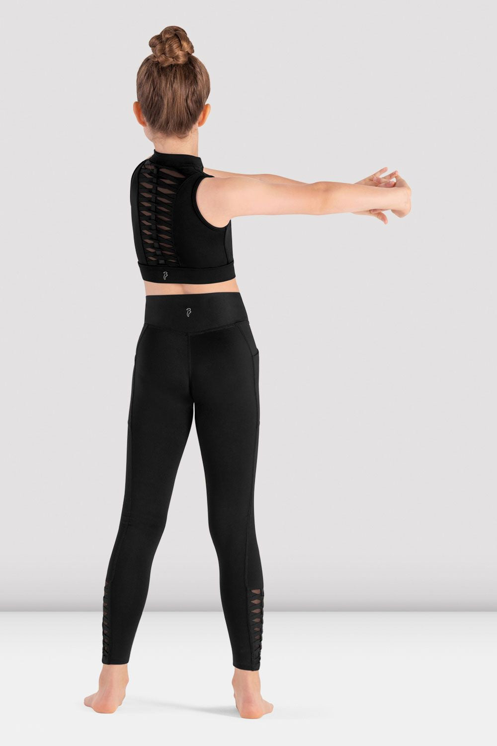 Our Girls Una Full Length Leggings feature a cross over waistband, full length leg with intricate woven mesh panel details along the side of the calf. Pair with our Jacky Zip Front Crop Top or Idalene Camisole Crop Top for your perfect dancewear look.